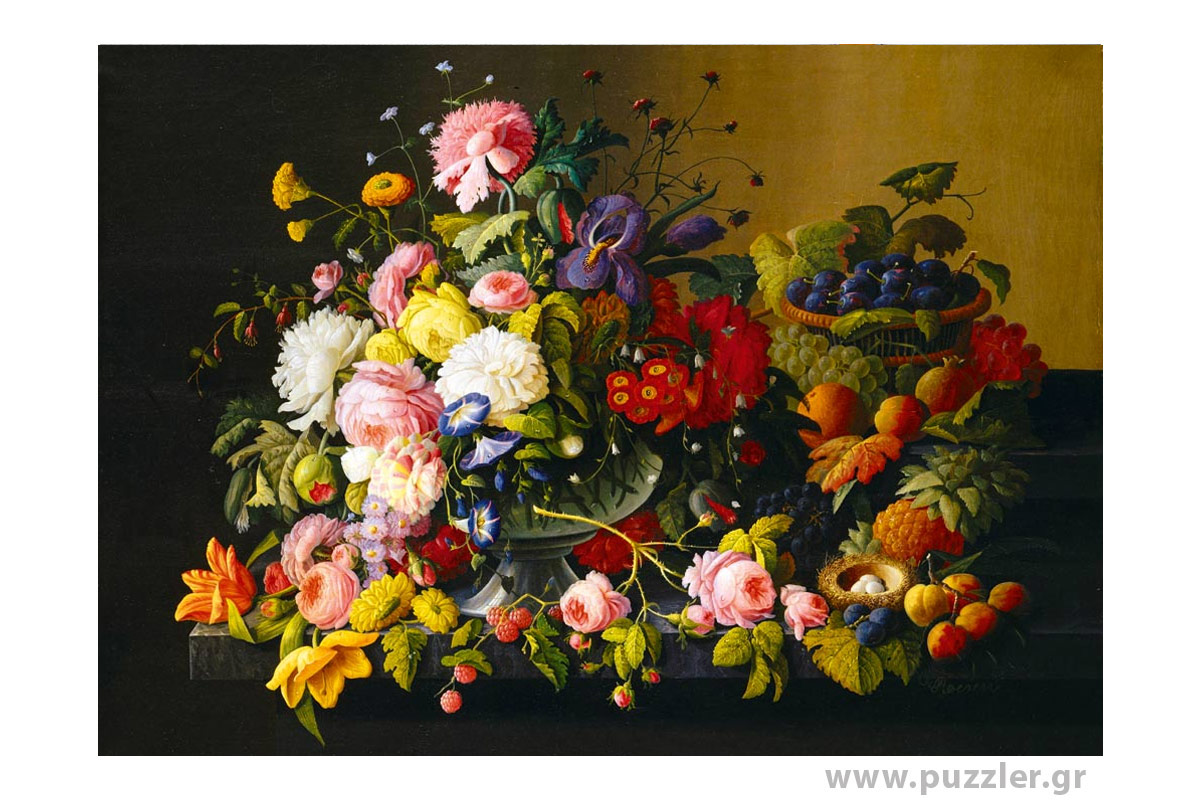 Bluebird puzzle Severin Roesen – Still Life, Flowers and Fruit, 1855 1000 κομμάτια