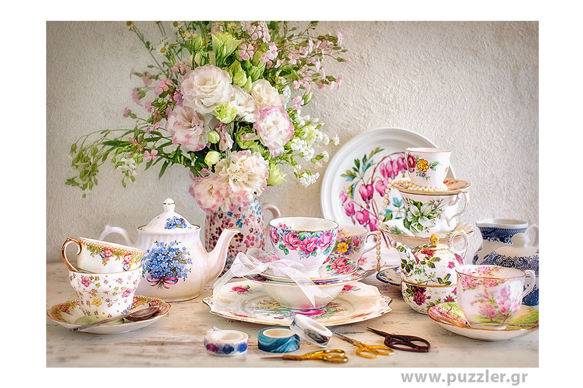 Puzzle – παζλ Still Life with Porcelain and Flowers που αποτελείται από 500 κομμάτια, της Castorland