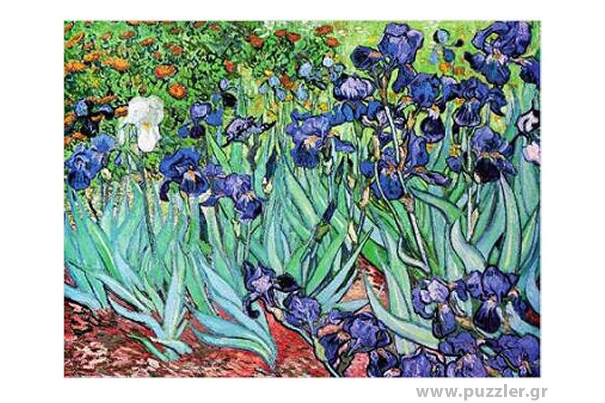 Παζλ 1000 κομμάτια Vincent van Gogh – Iris αναπαράγει το διάσημο έργο που ζωγράφισε ο καλλιτέχνης στο ψυχιατρείο του Saint-Rémy. Για τον Βαν Γκογκ, η ζωγραφική ήταν μια μελέτη του χρώματος και είχε στόχο να επιτύχει μια έντονη αντίθεση χρωμάτων. Τοποθετώντας τα μωβ λουλούδια σε κίτρινο φόντο έκανε τα διακοσμητικά σχήματα να ξεχωρίζουν ακόμα πιο έντονα.